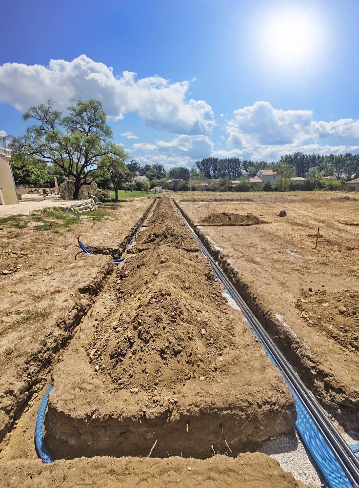 Les travaux de VRD assurent la durabilité et la fonctionnalité des aménagements extérieurs.Ils comprennent la création et la réhabilitation de voiries pour garantir une circulation sécurisée, ainsi que le raccordement aux réseaux essentiels : eau, électricité et télécommunications. Depuis plus de 15 ans, nous collaborons avec des entreprises spécifiques pour les réseaux d’adduction et d’assainissement en voirie, renforçant notre expertise dans la pose de canalisations et de réseaux enterrés fiables et durables. Ces interventions participent à la viabilisation des terrains à bâtir et lotissements, tout en intégrant des solutions esthétiques et pratiques. L’aménagement des accès et trottoirs valorise vos espaces en conciliant fonctionnalité et harmonie visuelle.